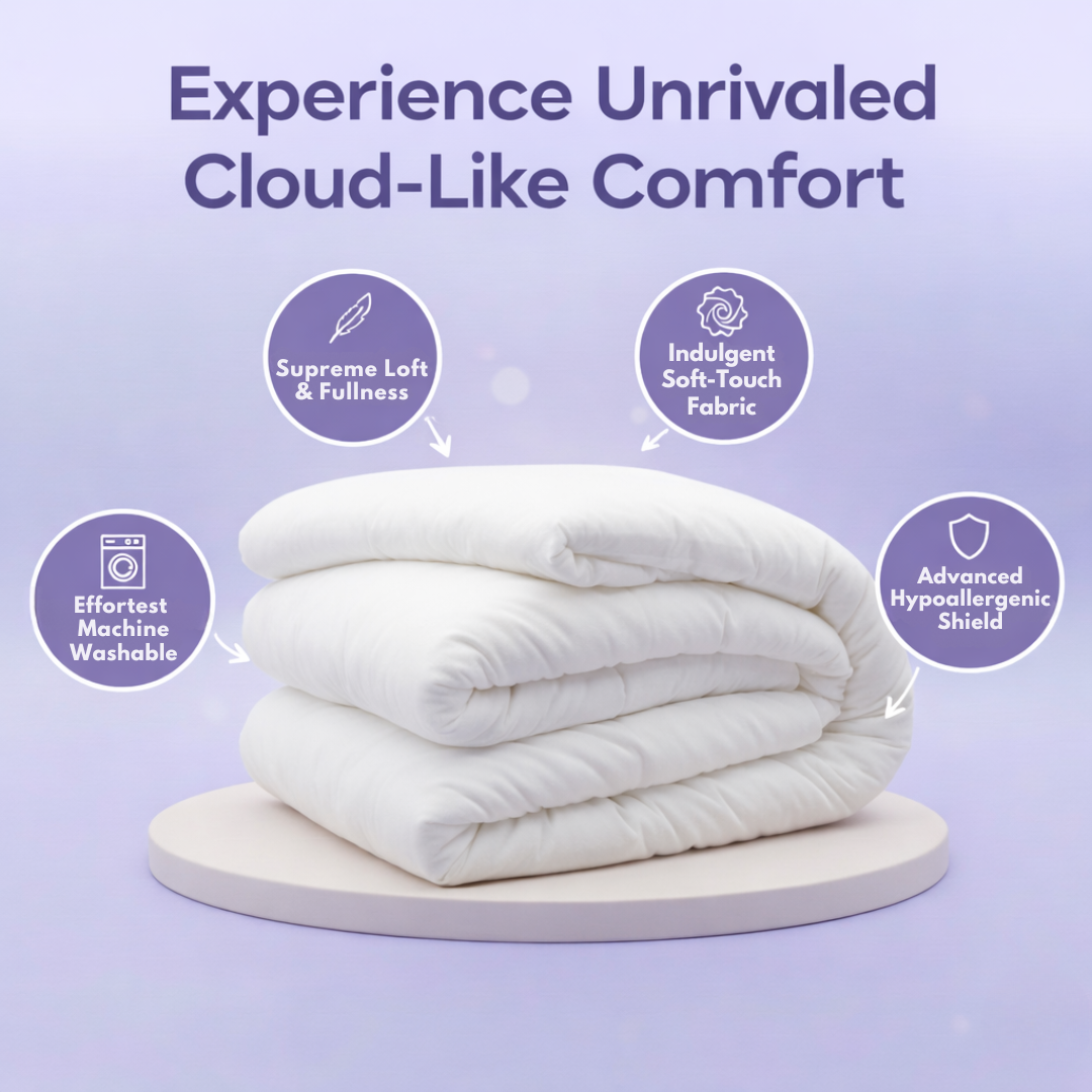 With double-stuffed softness, heat-regulating technology, and sustainable vegan fill, it offers unmatched comfort that adapts to your body’s needs, unlike typical comforters that can leave you too hot or too cold.