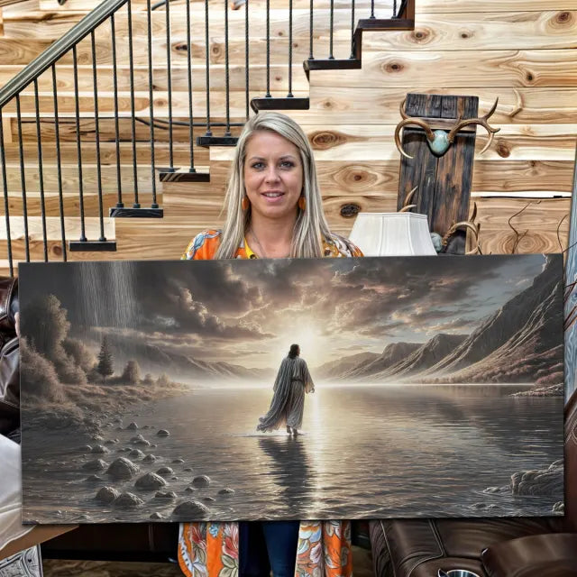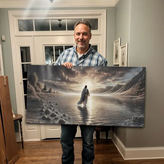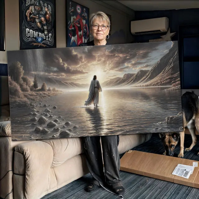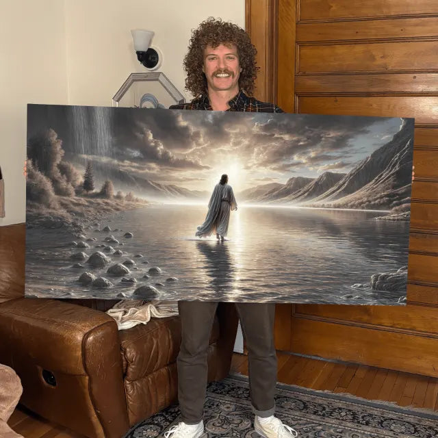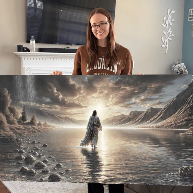 — Cynthia H., New York"This artwork takes my breath away every time I walk by it. Seeing Jesus walking on water, with the light shining all around Him—it reminds me that no matter how big the storm, He’s bigger. I hung it in our living room, and it brings such peace to the space. It’s not just a picture—it’s a promise.”